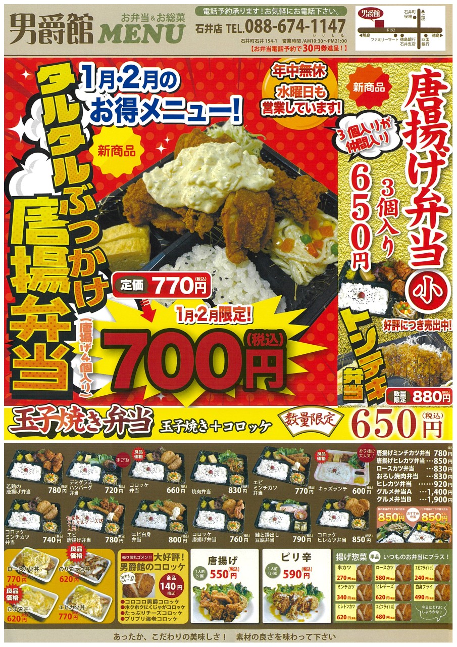 男爵館|お弁当&お惣菜|年中無休|お得メニュー
