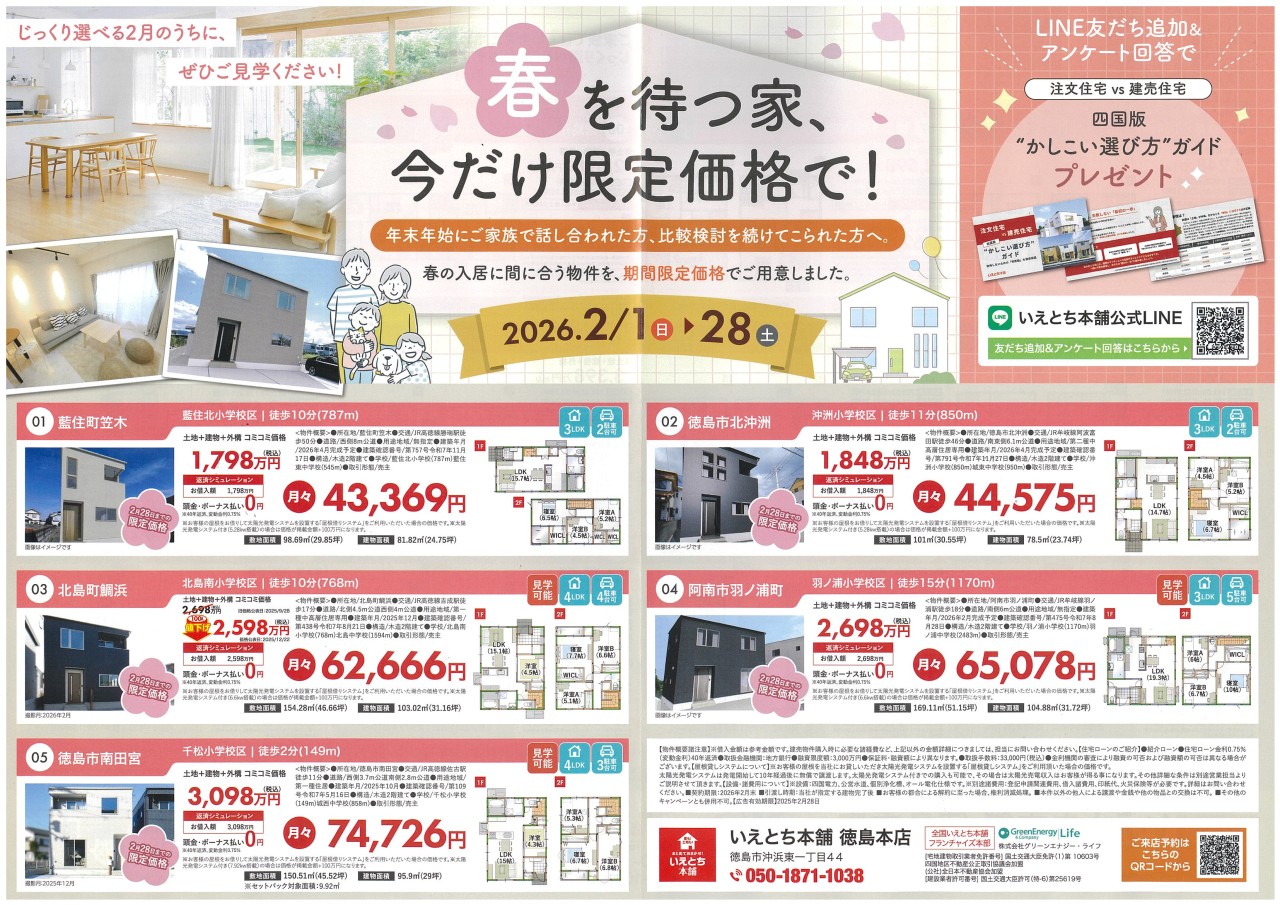 いえとち本舗 徳島本店 島田店|春を待つ家、今だけ限定価格で!