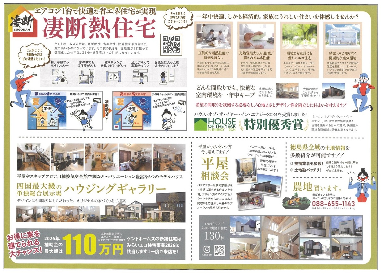 ケントホームズ【徳島南店ハウジングギャラリー】凄断熱🔥断熱等級7