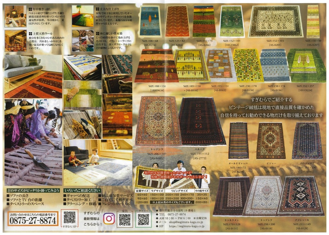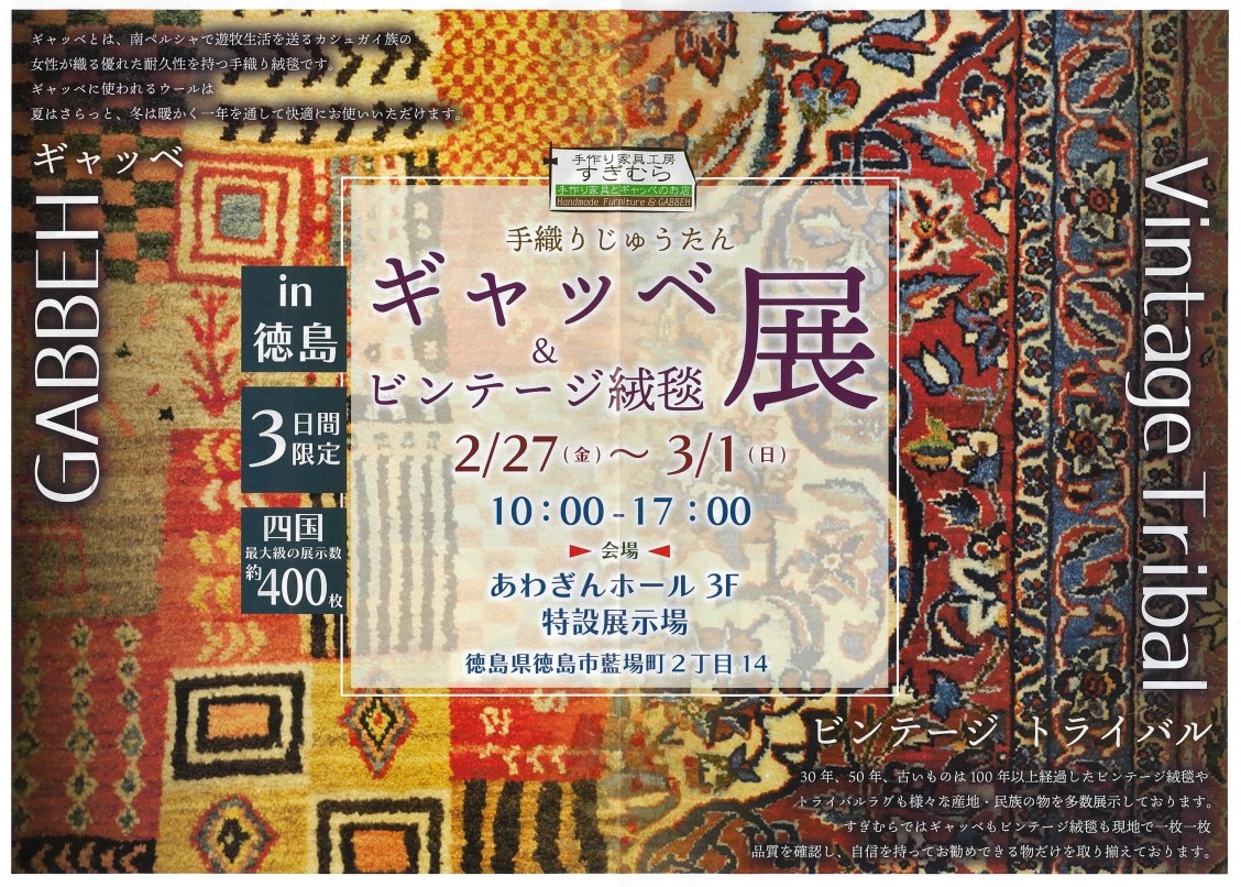手作り家具工房すぎむら|手織りじゅうたん ギャッベ展&ビンテージ絨毯