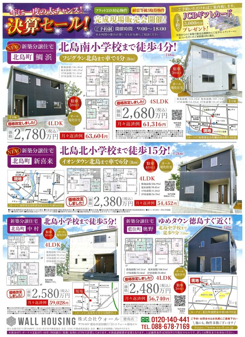 株式会社ウォール 徳島店|WALL HOUSING|年に一度の決算セール!完成現場販売会
