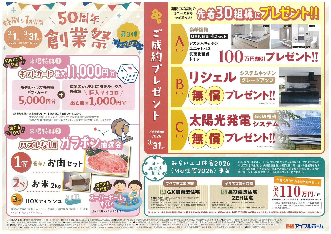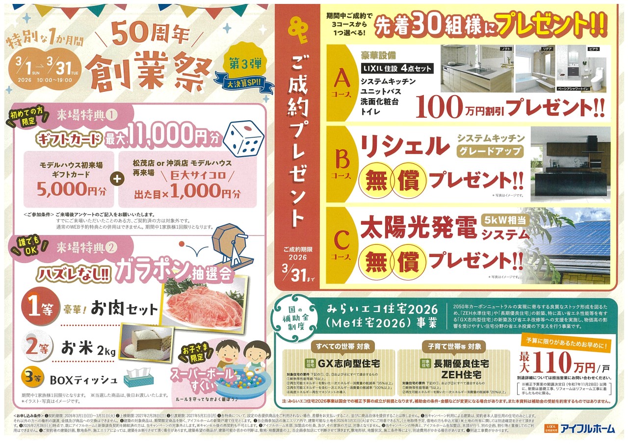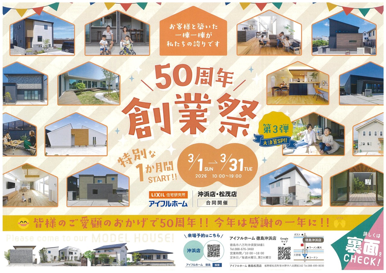 アイフルホーム徳島沖浜店•徳島松茂店|50周年 創業祭 第3弾